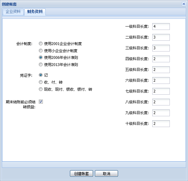 系统内提供最多六级的会计科目,除第一级科目长度由制度规定为4位以外,其他各级科目长度均可以由用户根据本单位的实际情况来定义长度,但科目编码总长度不得超过18位。