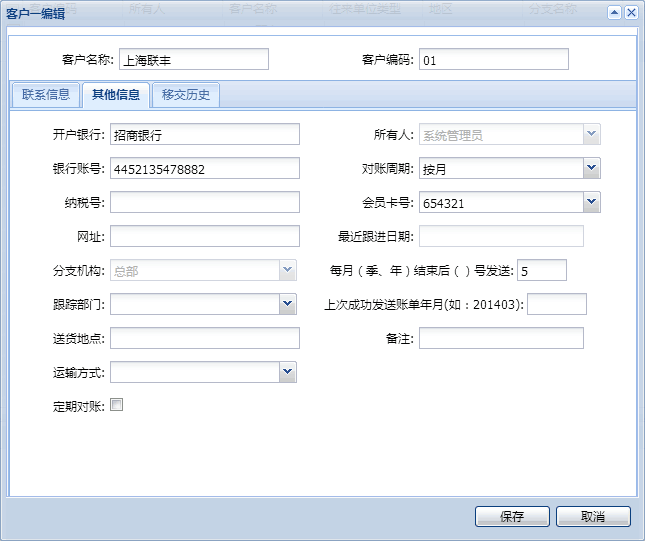 4. E-mail:在采用对账协同时,需要准确录入该客户的E-mail,否则无法使用对账功能;